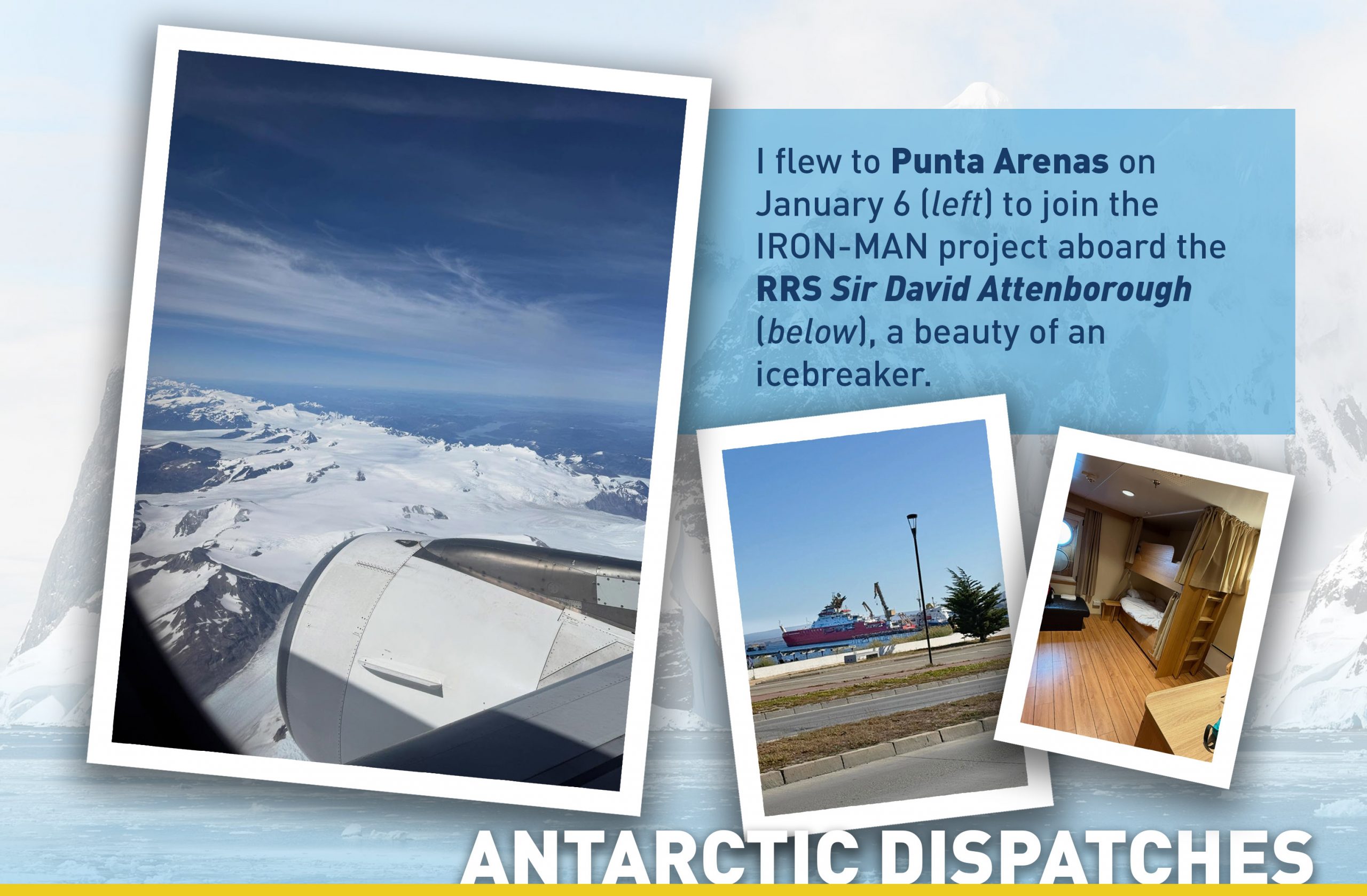 I flew to Punta Arenas, Chile, on January 6 to join the IRON-MAN project. IRON-MAN is short for Iron and Manganese, and we’ll be focusing on how trace metals like these regulate phytoplankton growth and impact the carbon cycle.