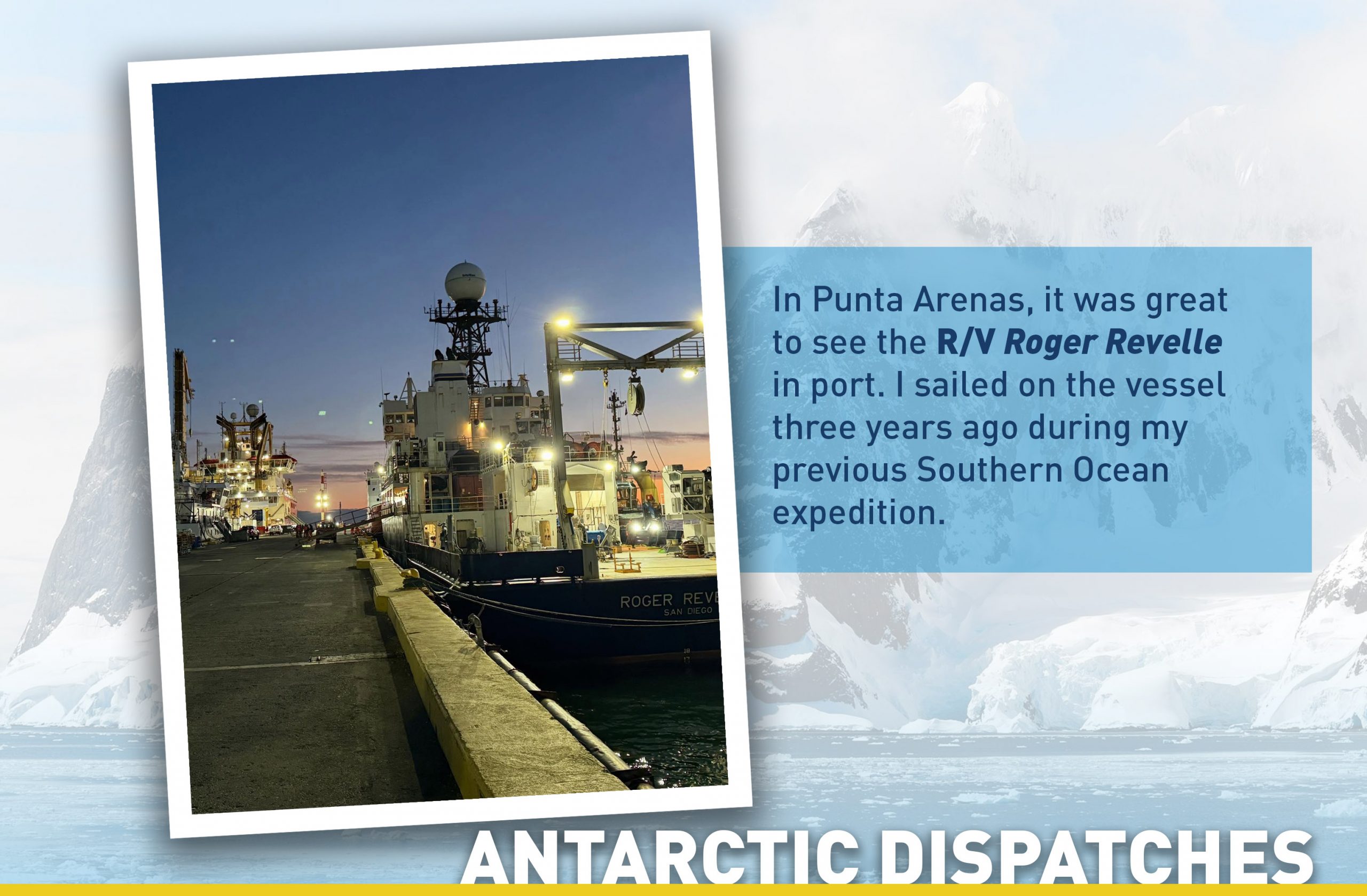 In Punta Arenas, it was also great to see the R/V Roger Revelle in port! I sailed on the vessel during my previous Southern Ocean expedition. Other colleagues at Bigelow Laboratory have performed research on the ship, too.