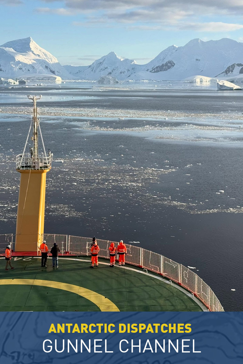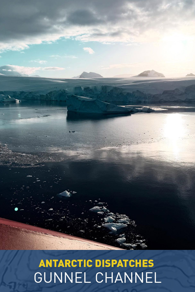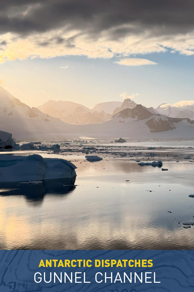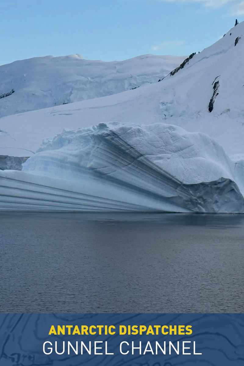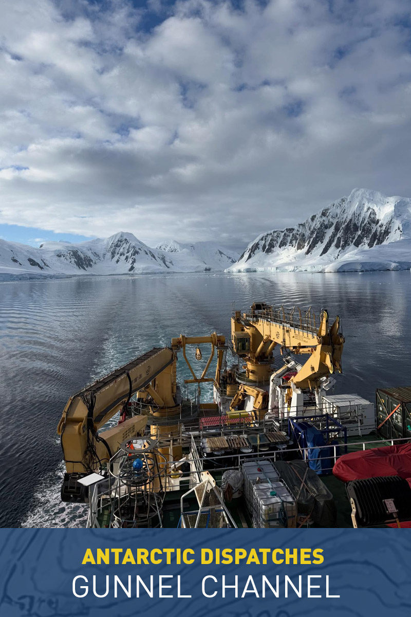 - From Rothera Research Station, the R/V Sir David Attenborough headed north toward Palmer Station. Along the way, we squeezed through the Gunnel Channel on the east side of Adelaide Island. The channel is just one kilometer wide and about 13 kilometers long. It gets its name from the impression that the vessel will scrape its “gunnels,” or gunwales, along the sides of the channel.