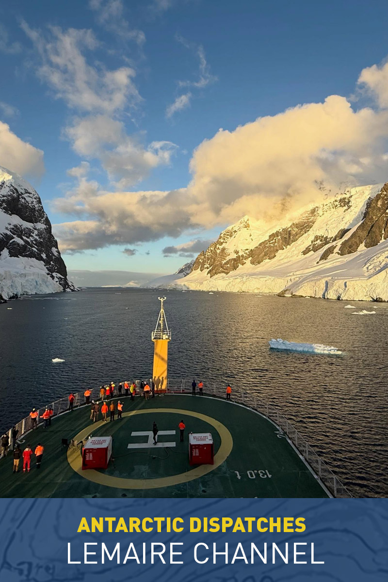 - We also passed through the Lemaire Channel, which is one of the most visited places in Antarctica. It’s easy to see why! The calm water looked like a mirror speckled with icebergs. From here, we headed offshore to sample at the shelf edge, then steered back toward the shore to continue along the Gerlache Strait.