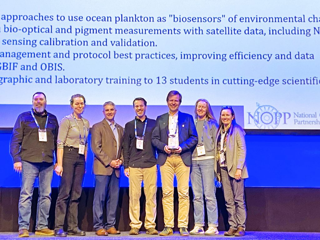 A collaborative project featuring Bigelow Laboratory Senior Research Scientist Nicole Poulton was awarded the 2024 Excellence in Partnering Award from the National Oceanographic Partnership Program.