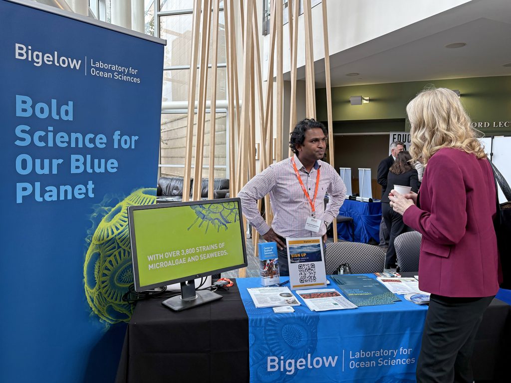 Also at the BioME annual conference, Senior Research Scientist Manoj Kamalanathan and Chief of Staff Valerie Young (not pictured) met with participants at Bigelow Laboratory‘s exhibit table.