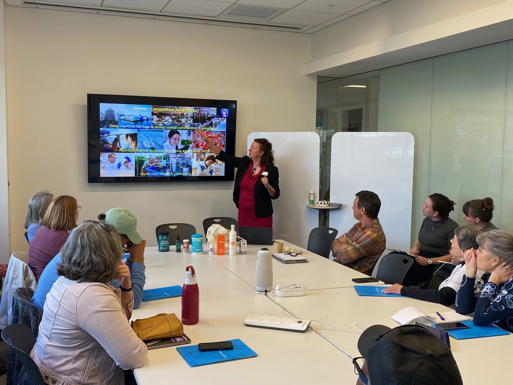 On October 9, the National Caucus of Environmental Legislators New England Blue Economy Tour visited our campus to hear from speakers (including Beth Orcutt, pictured) and discuss challenges facing the working waterfront, the importance of aquaculture and seafood-focused research programs, and more. Attendees included state senators, representatives, and legislative staffers from New York, North Carolina, Rhode Island, Connecticut, Maryland, Oregon, Maine, and Georgia.