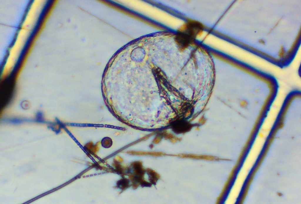 Check out these micrographs of Noctiluca, bubble-like unicellular organisms sampled from the waters around Phippsburg, Maine. While their rotund appearance is festive, they are also capable of bioluminescence. The name Noctiluca means “light at night,” an apt descriptor for these little living baubles that flash en masse in response to mechanical stress, such as when boats pass or waves crash.