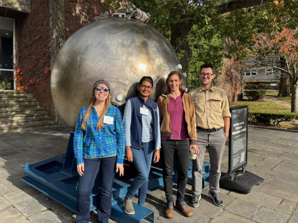 Pictured from left to right are Tandy Center for Ocean Forecasting Assistant Director Hannah Blair, Postdoctoral Scientist Rebekah Shunmugapandi, and senior research scientists Karen Stamieszkin and Nick Record.